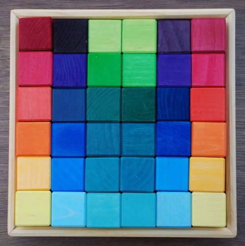 Grimm s Mosaic Square of 36 Wooden Cube Blocks with Storage Tray 4x4 Size